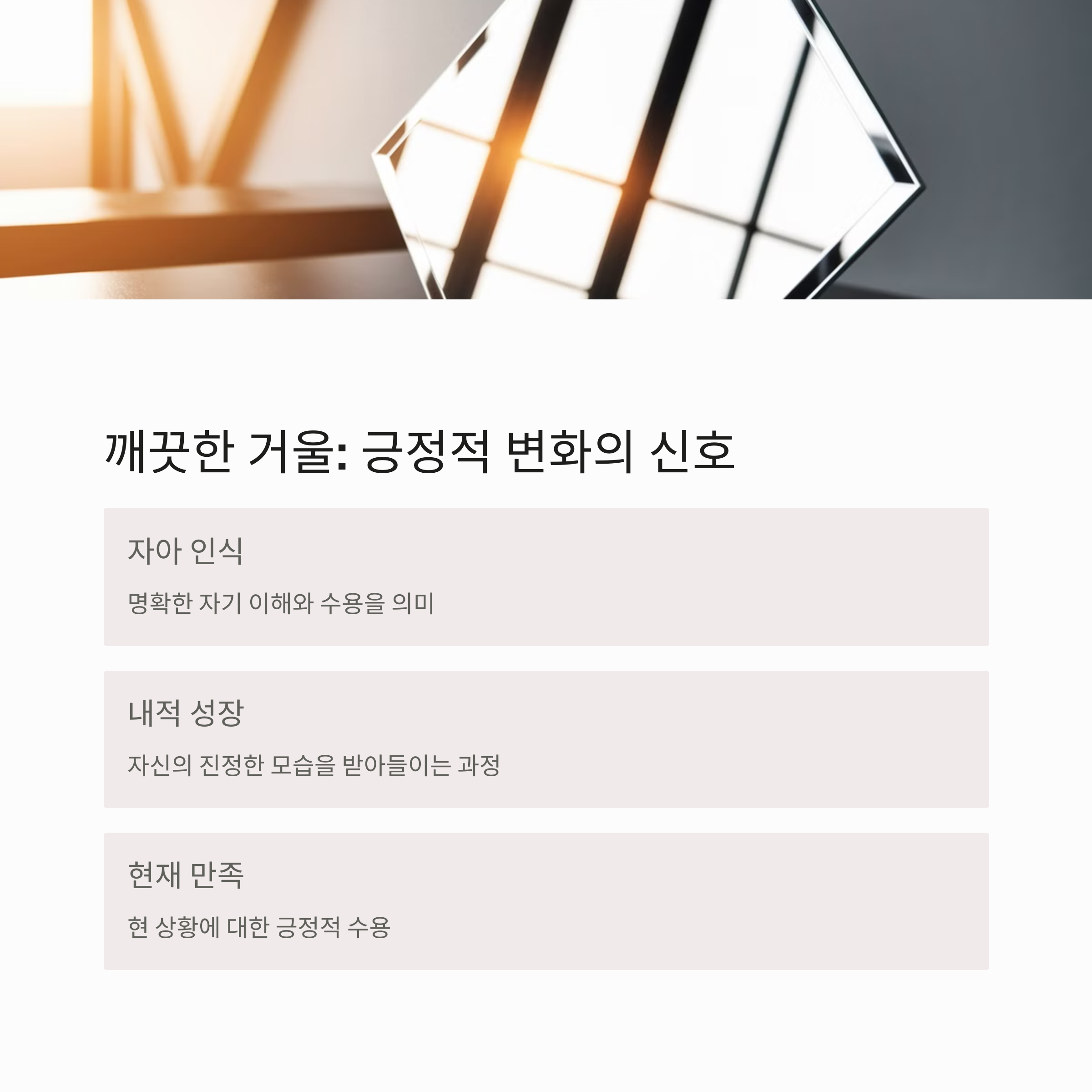 | 깨끗한 거울 꿈 | 긍정적 변화 및 성찰 |